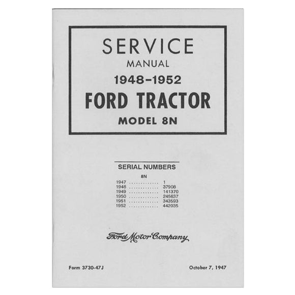 Item #: BOK064Specifications: Final Application: 8N (1947-52) (Service manual) Replacement Number: Notes: Has very limited information on engine service.